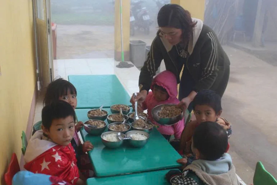 Thế nhưng, sự kiên cố của hạ tầng vẫn không khỏa lấp được sự khắc nghiệt của thực tại. Cô giáo Long Thị Loan và Nông Thị Thuyết – những người đã gắn bó nhiều năm tại đây – vẫn hằng ngày xách xô đi lấy nước khe suối về nấu ăn cho trò.