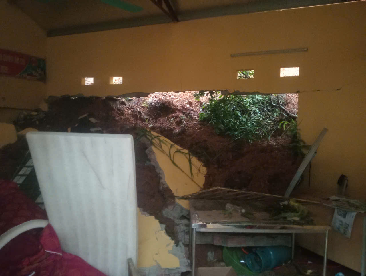 Niềm hy vọng về một mái trường kiên cố chưa kịp trọn vẹn thì tháng 10 năm ngoái, cơn bão Matmo ập đến. Những trận mưa xối xả gây sạt lở nghiêm trọng, vùi lấp và làm hư hỏng cấu trúc ngôi trường.