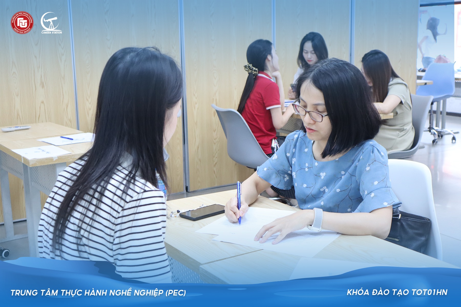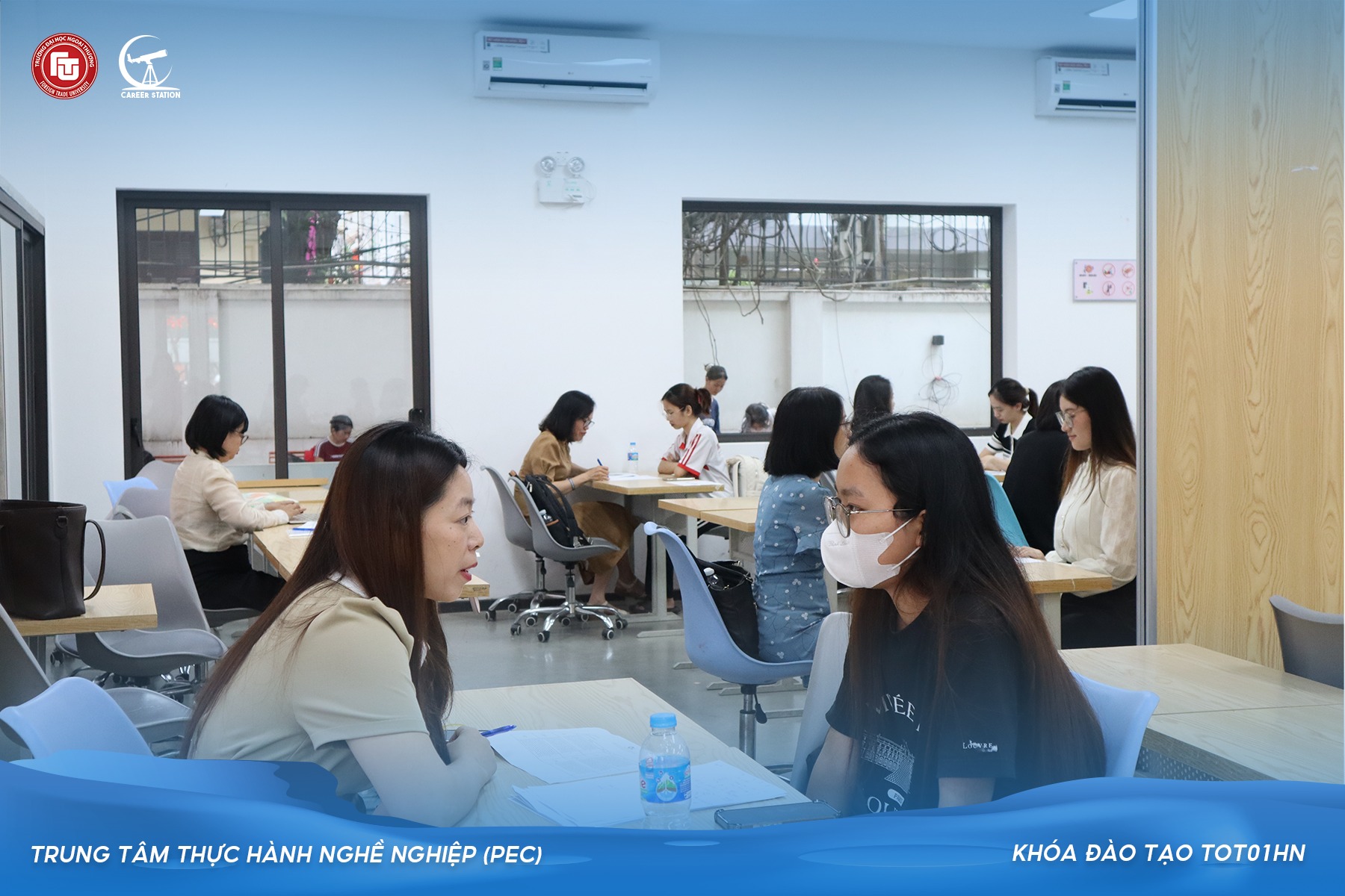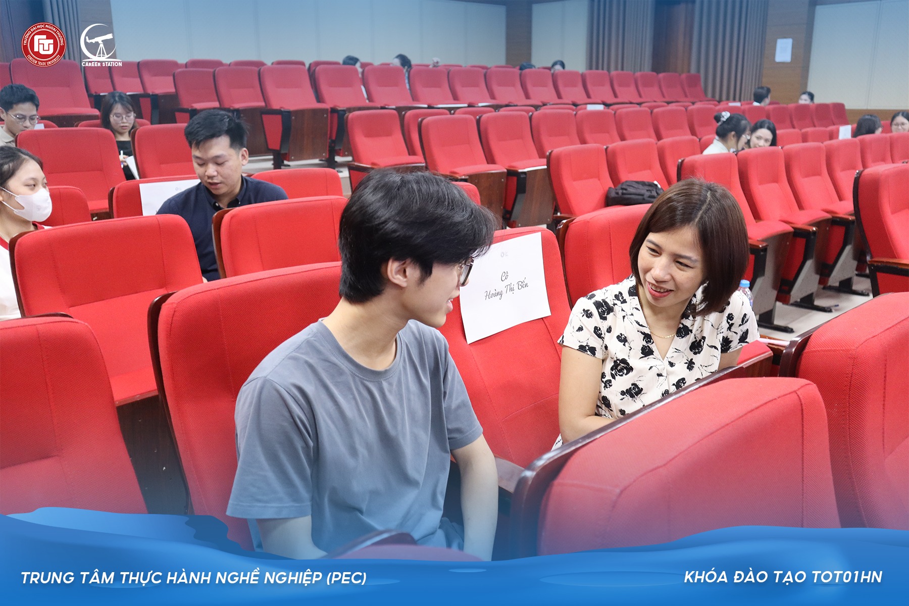 Sau thành công của Khóa đào tạo TOT01HN dành cho cán bộ, giảng viên Trường Đại học Ngoại thương, nhằm tiếp tục rèn luyện và nâng cao năng lực tư vấn hướng nghiệp cho học viên khóa học, Trung tâm Thực hành Nghề nghiệp (PEC) đã triển khai hoạt động Tư vấn hướng nghiệp 1:1 với thầy cô trường ĐHNT. Vào ngày 29/05/2025, buổi tư vấn đã diễn ra thành công với sự tham gia của 96 sinh viên và 36 giảng viên, cán bộ của FTU.